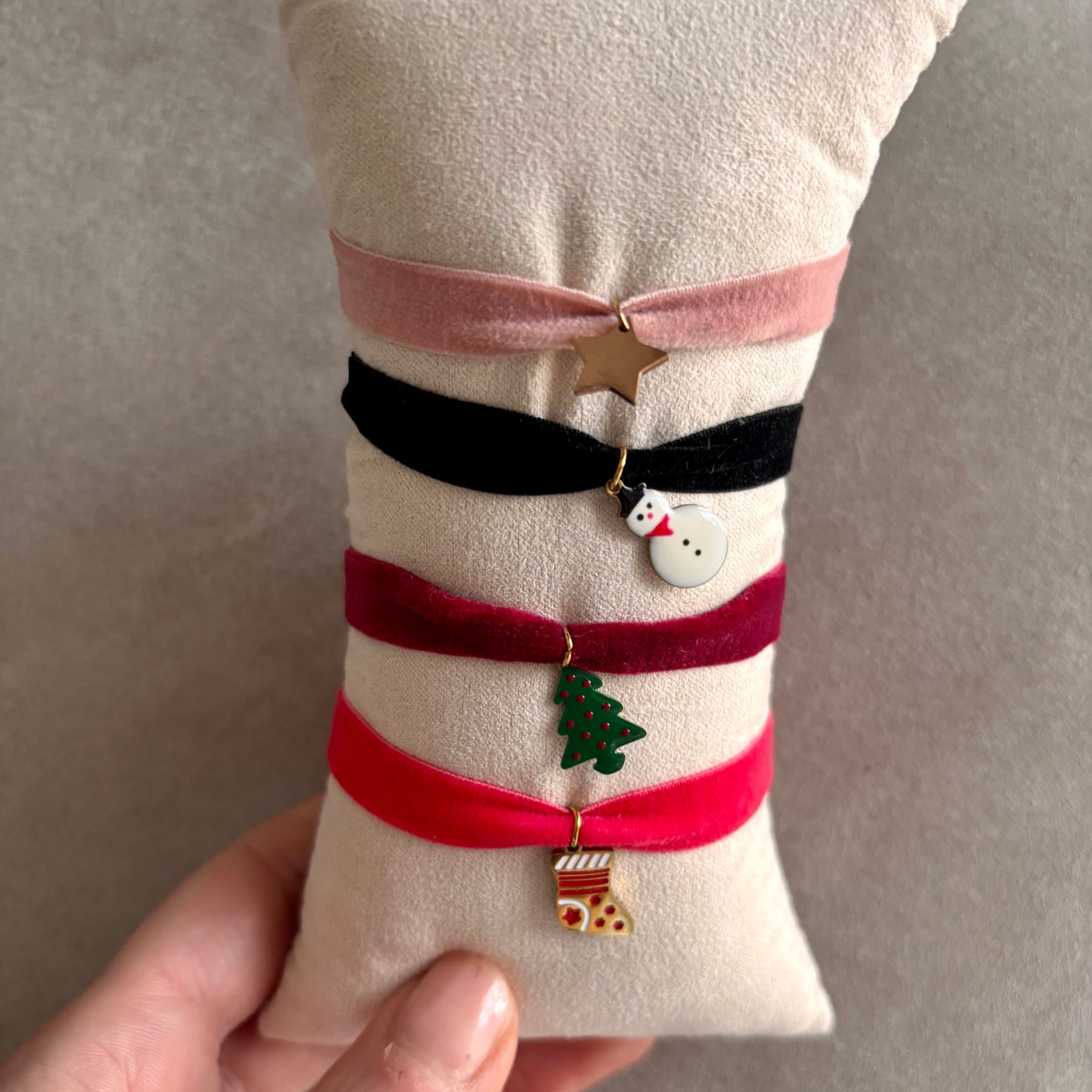 Bracciale fatto a mano in morbido velluto, con una comoda chiusura elastica con nodo. L'accento dorato della stellina in acciaio dona un tocco di eleganza magica. Grazie alla sua fattura artigianale, il Bracciale Naty sarà sicuramente un pezzo unico nel tuo guardaroba.